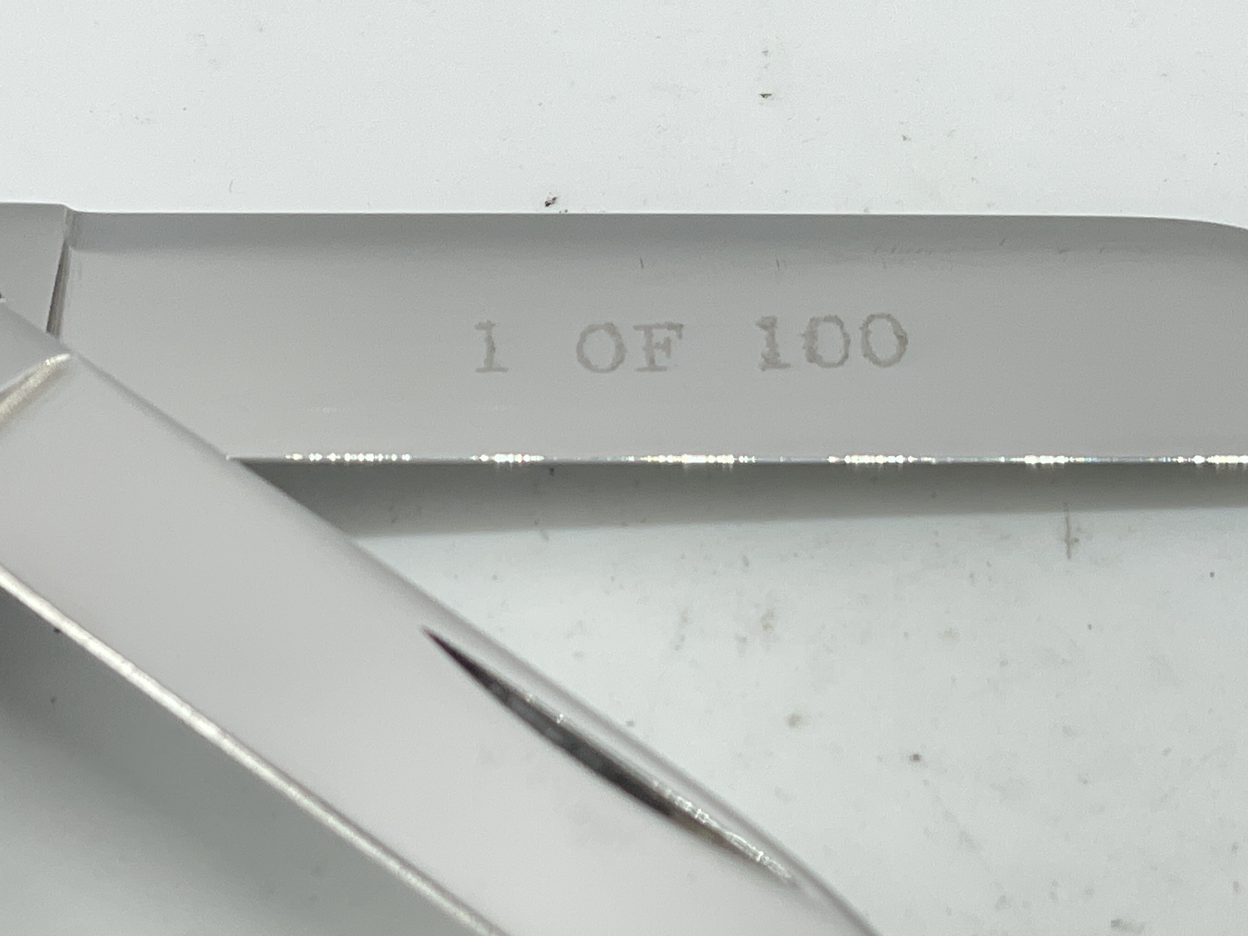 Grade C+: Used Condition w/ OMP Box. Blades show signs light use and some blade rub scratches. No cracks, no wobble, excellent snap.